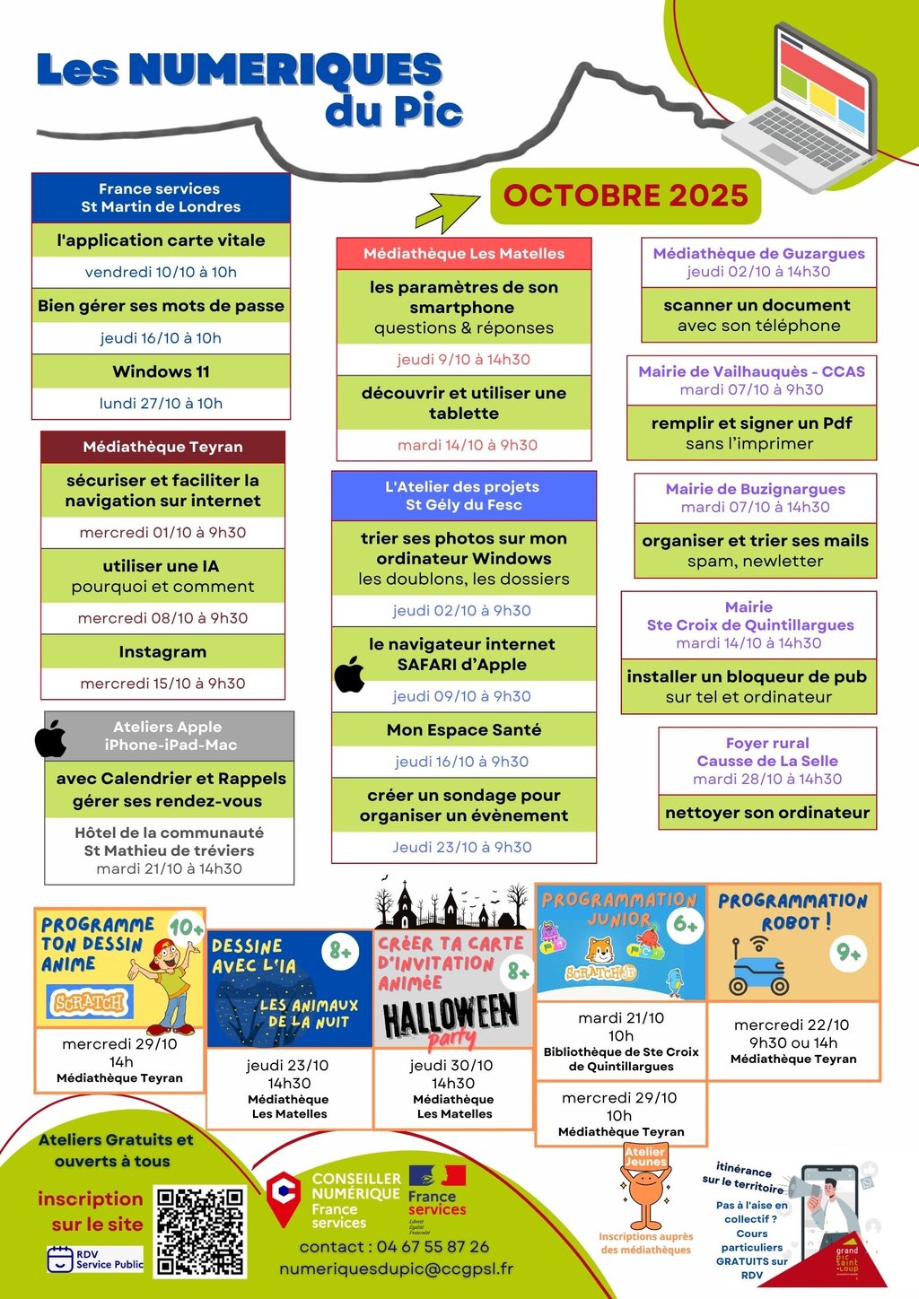 Votre espace France Services du Grand Pic Saint-Loup vous propose ses ateliers numériques pour le mois d'octobre.
