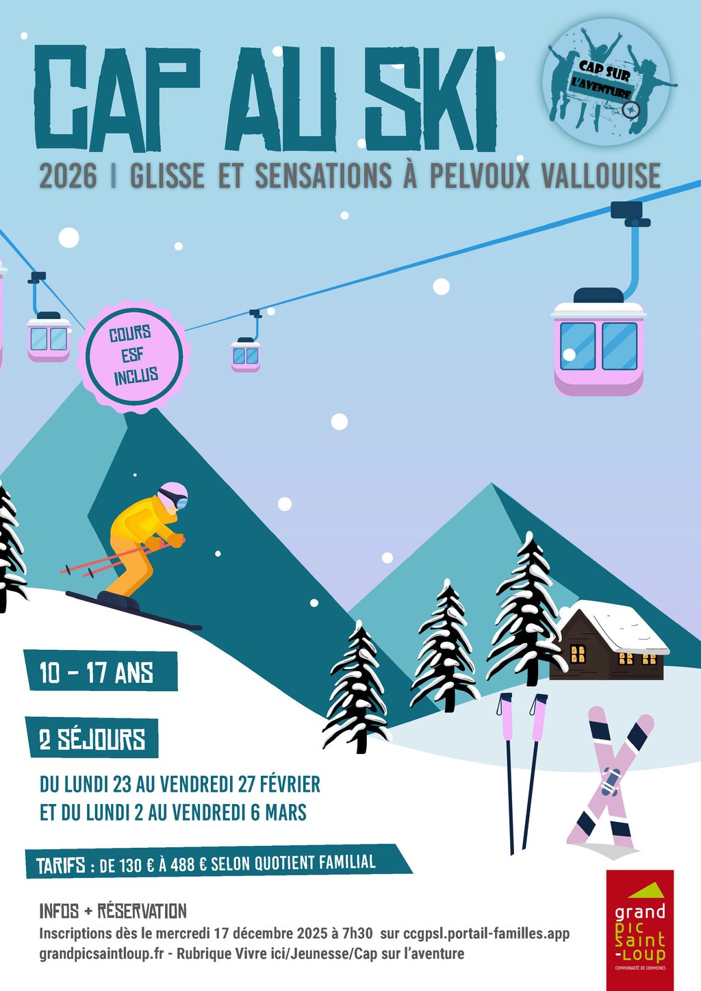 ► Pour les prochaines vacances d’hiver le service jeunesse CCGPSL propose deux séjours au ski pour les 10-17 ans.