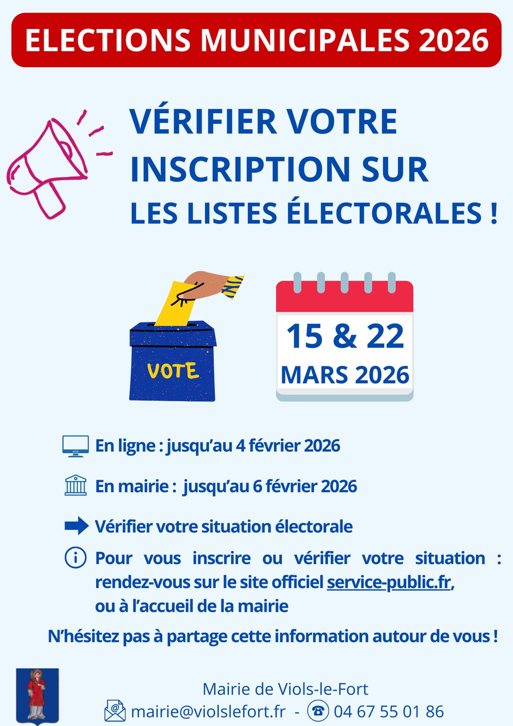 📣 ÉLECTIONS MUNICIPALES 2026 : VÉRIFIEZ VOTRE INSCRIPTION SUR LES LISTES ÉLECTORALES !
