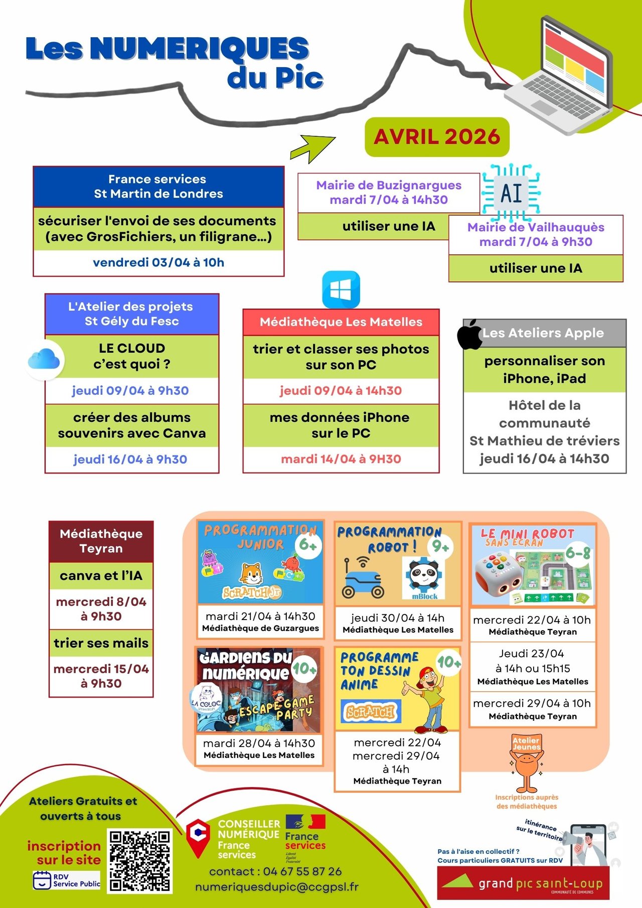 Votre espace France Services du Grand Pic Saint-Loup vous propose ses ateliers numériques pour le mois d'Avril.